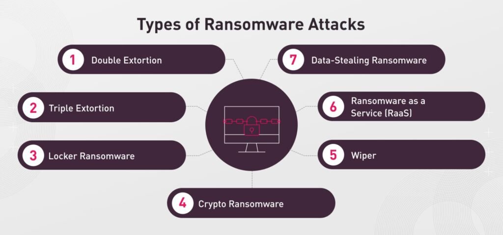 - Triple or Multi-Extortion: Applies extra pressure, including initiating Distributed Denial of Service (DDoS) attacks or extorting the victim’s partners and customers directly.